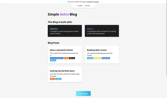 Section titled “Building a Blog with Astro and Cosmic”You can manage your Astro blog’s content using Cosmic and create webhooks to automatically redeploy your website when you update or add new content.